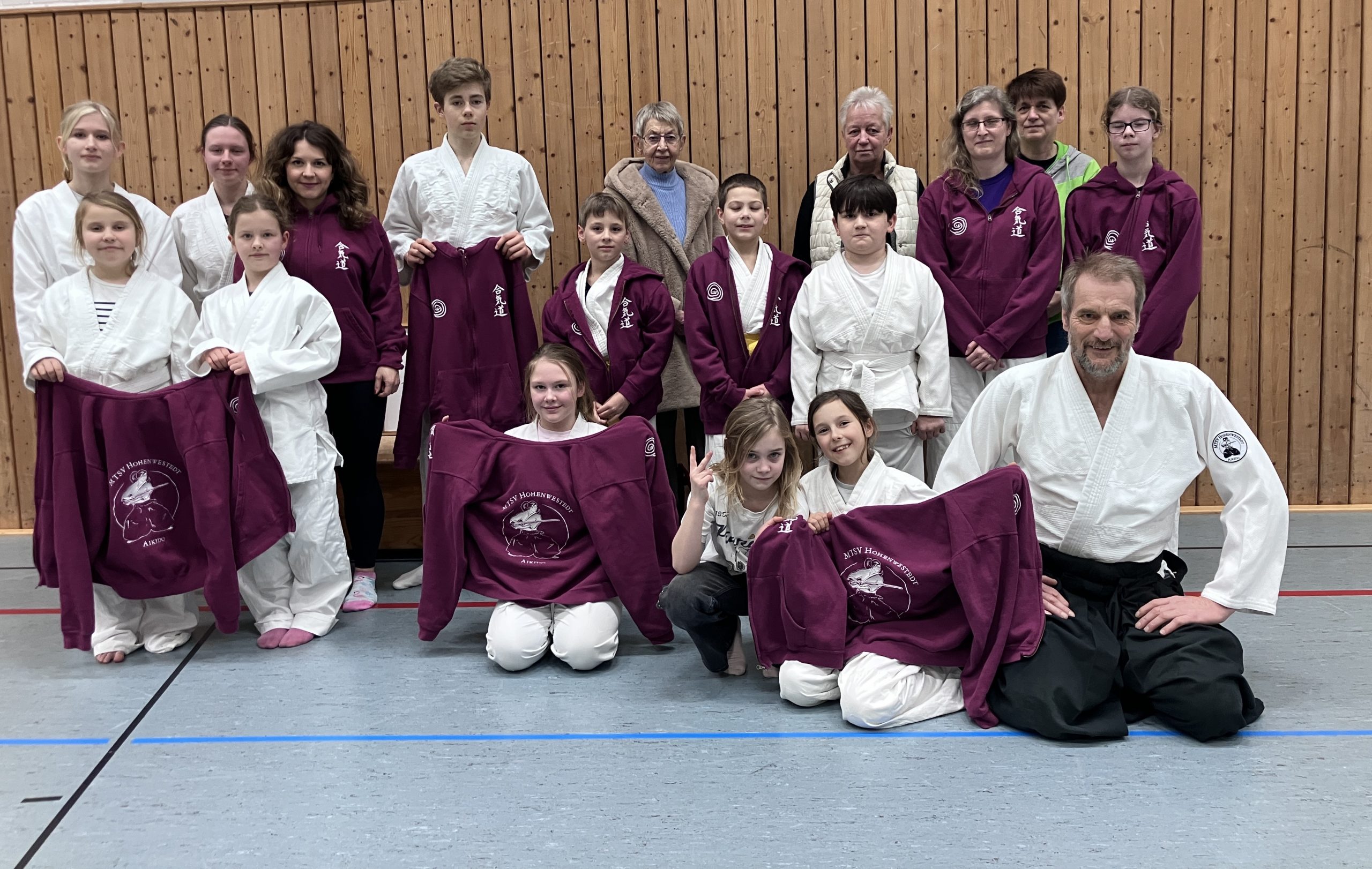 Nun durfte heute die Übergabe neuer Hoodies mit unserem besonderen Logo gefeiert werden. Hierzu hat Detlef Kirchhof als hochgraduierter Aikido Meister mit seinen jungen Aikidoka ein besonderes Training initiiert. So hatte Frau Spindelhirn Gelegenheit zu sehen, dass ihr Geld gut und nachhaltig angelegt ist. Die zukünftigen „Meister „ihres Fachs konnten ihr Können demonstrieren und taten dieses mit viel Freude und Elan. So erfuhr sie und auch Ute Smyrek und Meggi Rohwedder vom MTSV Vorstand, die Dankesworte des Vorstandes überbrachten, viel übers Aikido, über das Training mit den Kindern und Jugendlichen und die dahinter stehende Philosophie und Idee.